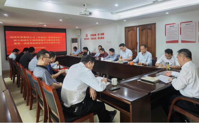 按照学习教育的部署要求,2026年3月30日,汕尾农垦集团公司(局)党组领导班子举办树立和践行正确政绩观学习教育读书班暨第一季度党组理论学习中心组学习会。党组书记、董事长(局长)罗雪清带头领学了习近平总书记近期关于树立和践行正确政绩观的重要讲话重要指示精神以及《习近平关于树立和践行正确政绩观论述摘编》第一章、第二章内容并结合学习、工作实际带头讲专题党课。党组领导班子成员及全体在职党员参加学习并结合主题开展集中交流研讨。